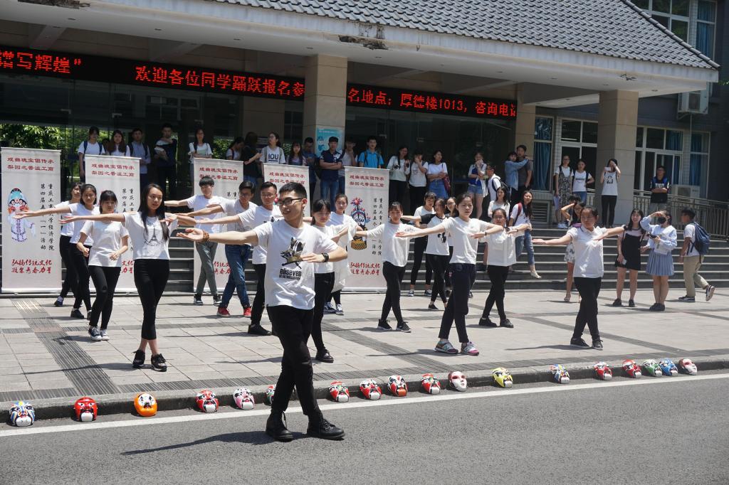 “第一套戏曲广播体操现在开始……”腕花小云手、单拉山膀、弓箭步,5月17日,pp电子游戏平台网站兰花湖片区和南岸校区,30多名活力四射的大学生整齐划一地跳起了戏曲广播操,动感的音乐配上健美、灵动的身段,引得大量过往师生驻足观看,让人眼前一亮。同学们表演的是中国有史以来第一套“戏曲广播体操”,戏曲操创新性的把戏曲程式化动作融入到大众健身理念,以流行动感的音乐配合优美的戏曲基本功动作,2017年1月一经推出便刷爆...