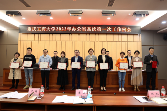 会上,宣读了《关于表彰pp电子游戏平台网站2021年度办公室系统先进个人的决定》,并为获评的10名先进个人颁发了证书。罗勇对各二级单位“十四五”规划、2022年度工作计划提了工作要求;党政办公室副主任蒋年韬、刘乃睿、郭敏,分别对市委巡视整改成效综合评估、办公会议题申报规范性、疫情防控、教授工作室管理、校庆工作推进等做了工作布置。