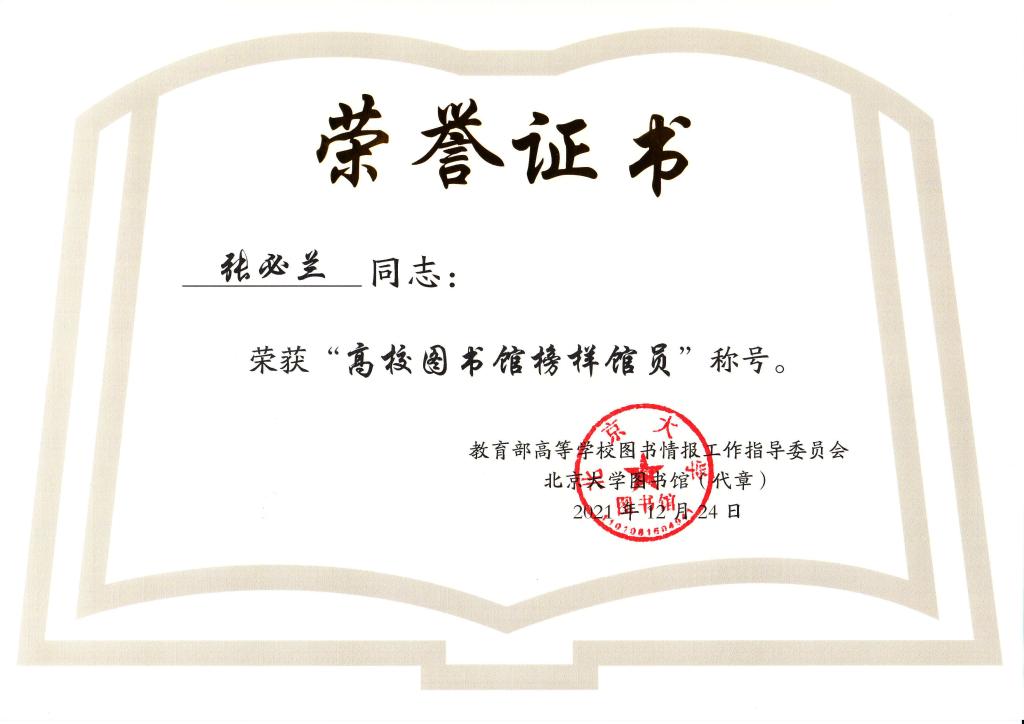 近日,为庆祝高校图工委成立40周年,教育部高等学校图书情报工作指导委员会对改革开放以来高校图书馆事业突出贡献者、高校图书馆榜样馆长、高校图书馆榜样馆员进行了表彰,pp电子图书馆张必兰老师荣获全国“高校图书馆榜样馆员”荣誉称号。重庆市共有三所高校教师获得该项荣誉,分别为西南大学、重庆大学和pp电子游戏平台网站。