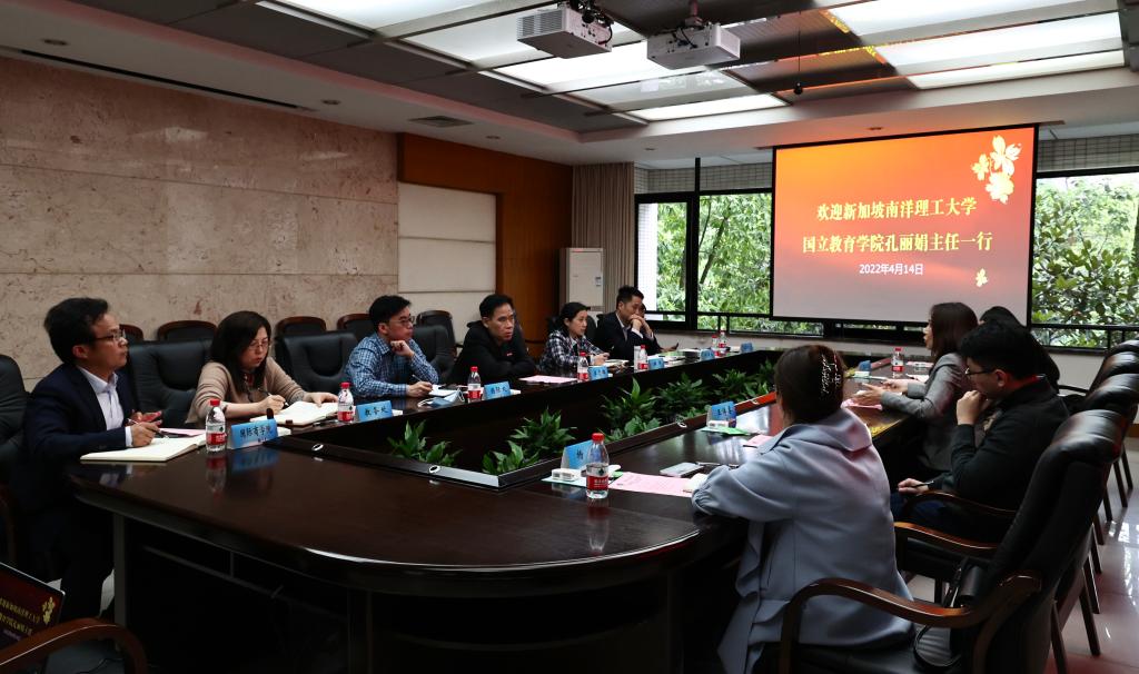 4月14日下午,新加坡南洋理工大学国立教育学院孔丽娟主任一行到校交流访问。双方在南岸校区厚德楼3019会议室进行座谈交流。pp电子党委书记李志雄、副校长柏群以及相关职能部门负责人参加了座谈会。