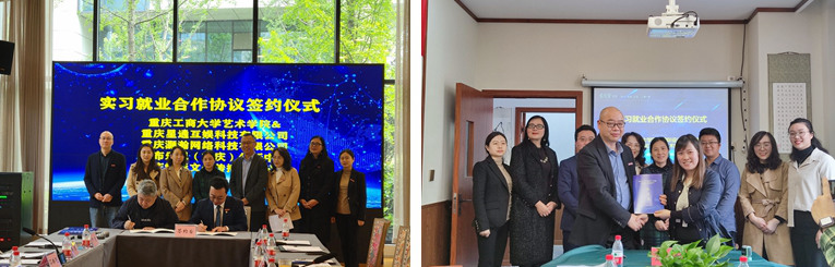 参会企业分别与艺术两院签订了实习就业合作协议,柏群为参会企业授牌“pp电子游戏平台网站艺术学院实习就业基地”“pp电子游戏平台网站现代国际设计艺术学院实习就业基地”。