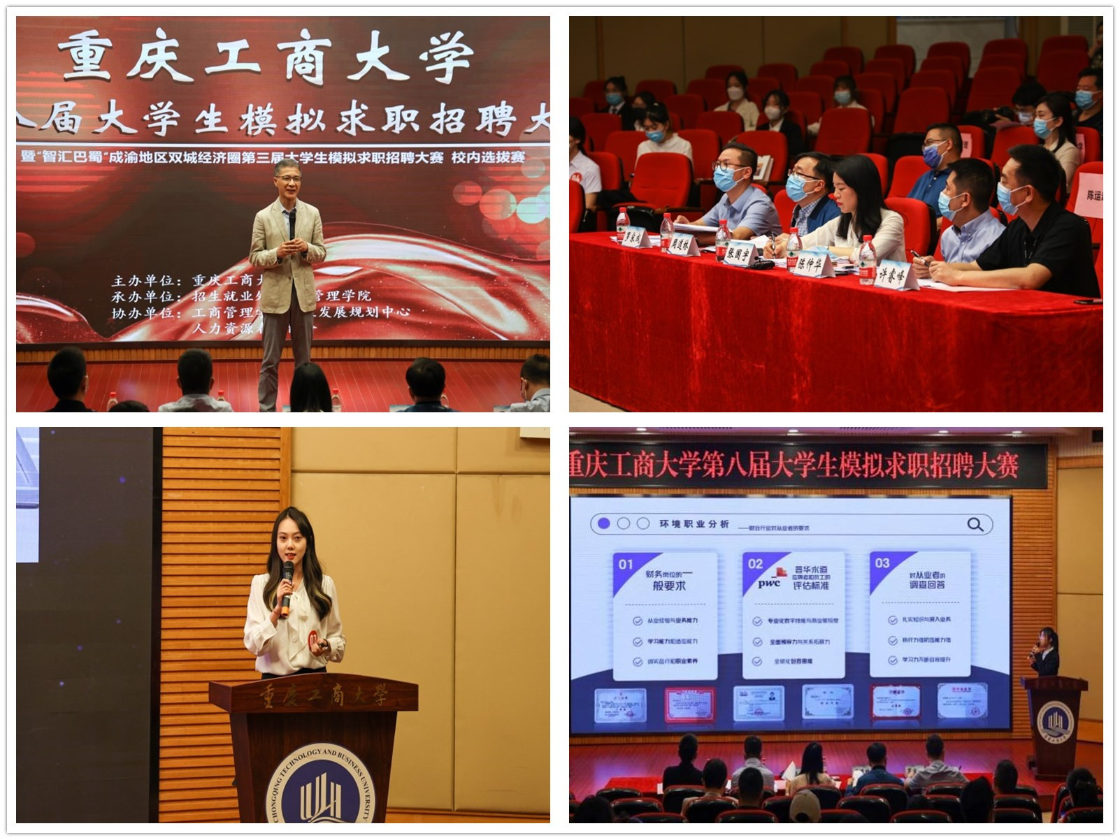 4月28日,由pp电子游戏平台网站招生就业处主办,工商管理学院承办的pp电子游戏平台网站第八届大学生模拟求职招聘大赛暨“智汇巴蜀”成渝双城经济圈第三届大学生模拟求职招聘大赛重庆赛区校内选拔赛在博智楼7200报告厅成功举办。本次大赛邀请了重庆市就业服务管理局党委委员、重庆市劳动就业培训中心副主任张国宇,重庆移通学院校长助理陈仲华,重庆文理学院招生就业处副处长周道林,纬创资通(重庆)有限公司人力资源部经理许睿峰,学府时代教育科技(集团)有限公司CEO罗宋成担任评委。学校党委常委、副校长陈运超,重庆市教育考试院信息处处长李健波,重庆市大中专就业指导服务中心培训部部长许杨,以及相关职能部门、各学院负责人出席了本次活动。