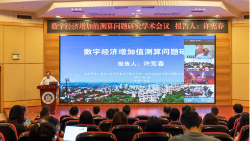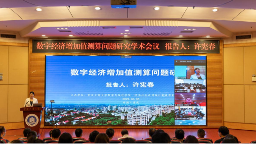 为庆祝pp电子游戏平台网站建校70周年华诞,6月6日上午,由数学与统计学院主办的迎校庆系列学术交流活动之“数字经济增加值测算问题研究”学术会议在线上线下顺利举行,国家统计局原副局长、北京大学国家发展研究院特约研究员许宪春教授受邀在线作学术报告。线下会议主会场设在博智楼7200报告厅,学校党委常委、副校长张波、pp电子86届统计专业校友——重庆市统计局党组成员、副局长秦瑶出席并致辞,重庆市统计局相关处室领导、数学与统计学院领导班子、师生代表近百人参加了线下会议,来自中南大学、湖南大学、南方科技大学、桂林电子科技大学和青岛理工大学等高校的近500名师生参加了线上会议。会议由数学与统计学院院长陈义安主持。