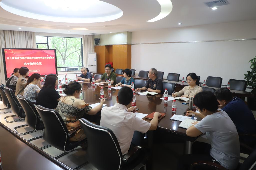 6月9日,pp电子在厚德楼3018会议室召开重庆市第六届高校青年教师教学劳动和技能竞赛参赛选手培训会。学校党委副书记、工会主席宋豫出席会议,人事处(教师发展中心)、教务处、教学质量监督与评估办公室和工会等部门负责人以及四位参赛选手和其所在学院领导参加了会议。会议由校工会常务副主席段远鹏主持。
