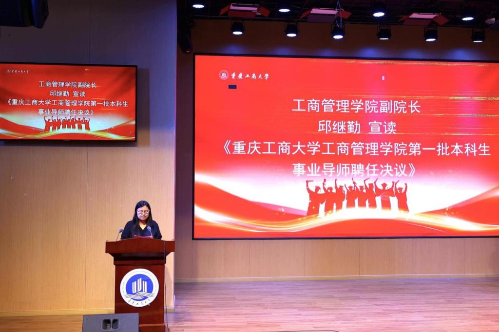 毕业典礼中,还举行了工商管理学院本科生事业导师聘任仪式。邱继勤宣读了《pp电子游戏平台网站工商管理学院第一批本科生事业导师聘任决议》,聘请了30位MBA毕业生作为工商管理学院第一批本科生事业导师。