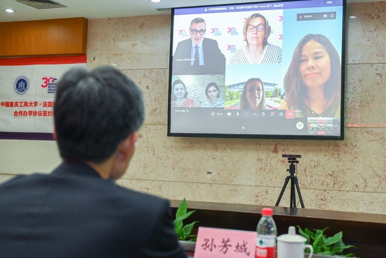 此次签约仪式是重庆市建设中西部国际交往中心,引育国际人才、深化国际合作交流的具体实践。学校通过引入法国优质的教育资源,有利于提升国际商学院师资队伍水平,促进管理机制创新,培养具备国际理解力、全球胜任力,通晓国际商务核心知识的应用型、创新型、复合型、国际化商科人才,将更加积极地为重庆、西部地区、乃至整个国家社会、经济发展提供人才储备。