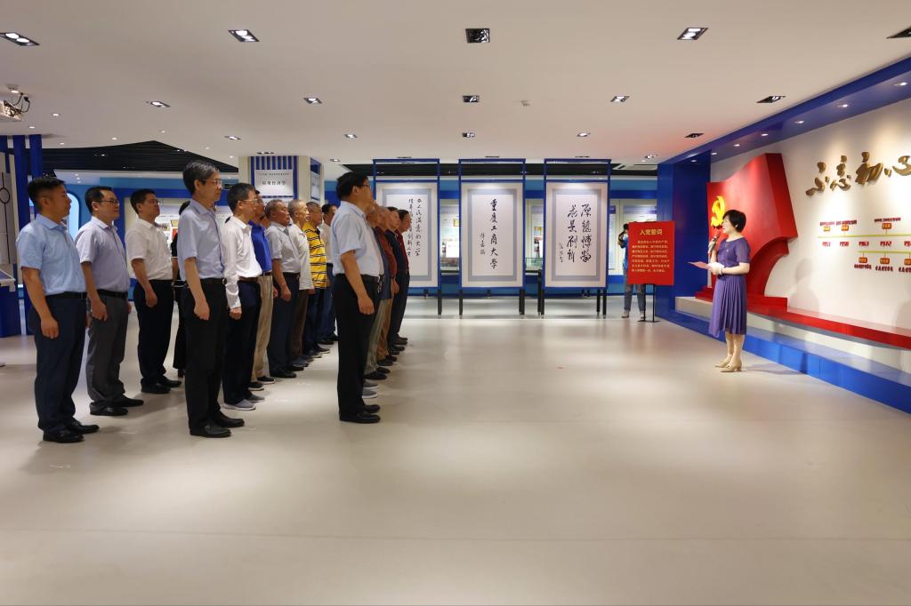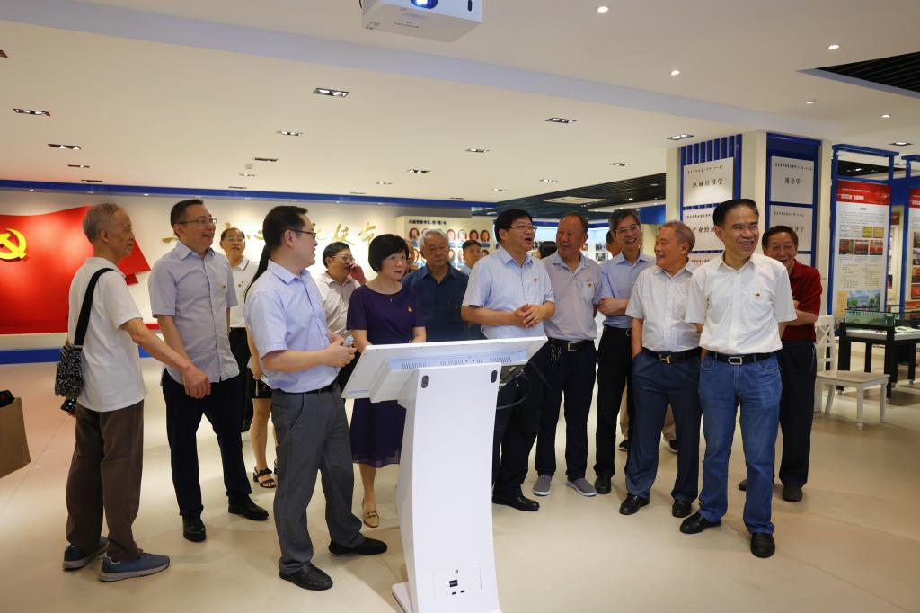为庆祝中国共产党成立101周年和pp电子建校70周年,7月1日上午,pp电子举行“庆祝七一重温70年校史”学校退休校领导参观校史馆活动。吴应发、张柏村、戴宏民、周希贤、王崇举、廖元和、张宗礼、甘德潜、黄朗、高古城、黄志亮等11位退休校领导,学校党委书记李志雄,党委副书记、校长孙芳城,党委副书记宋豫,党委组织部、党委宣传部和党政办、离退休工作部相关职能部门负责人参加。活动由宋豫主持。