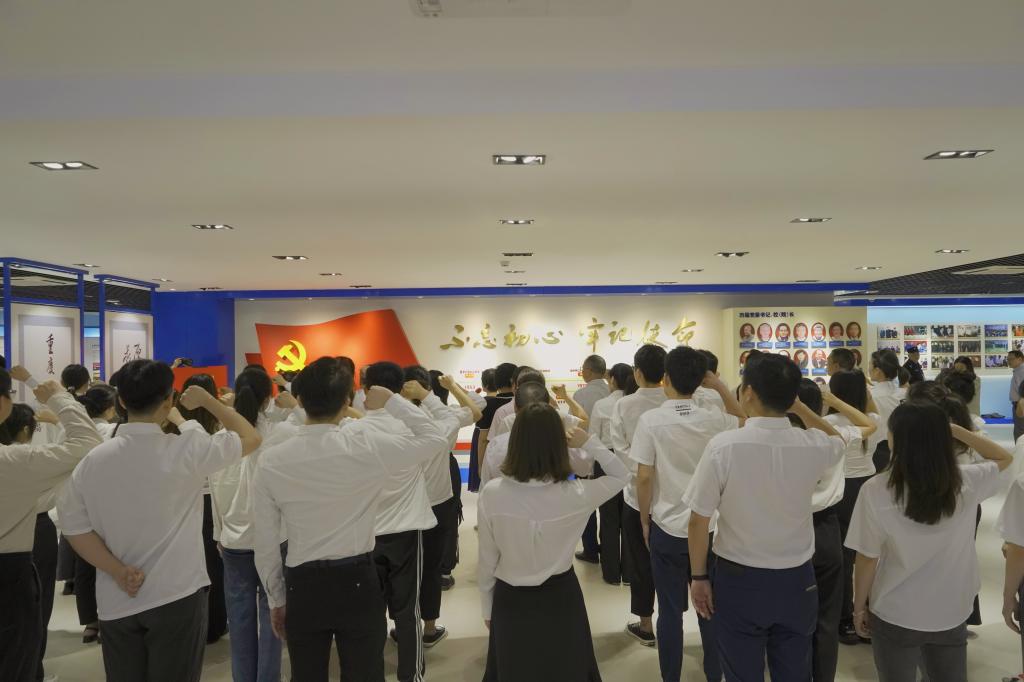 7月1日上午9点,为庆祝中国共产党成立101周年,秉承初心使命、牢记党员身份,pp电子在学校校史馆举办入党宣誓及重温入党誓词活动。学校党委副书记宋豫,党委职能部门负责人,机关党委、管理科学与工程学院党委、马克思主义学院党委、人工智能学院党委、环境与资源学院党委等二级党组织书记、副书记、专职组织员及师生新党员代表共计50余人参加活动。活动由党委常委、党委组织部部长郑夕春主持。