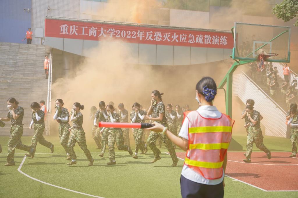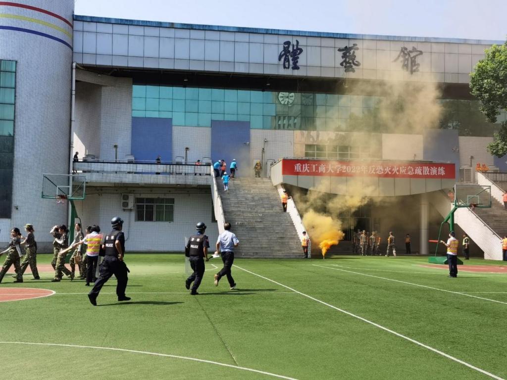 为进一步普及消防安全知识,切实增强广大师生员工的消防安全意识,提高师生应对突发事件应急处置能力,7月6日上午,pp电子于南岸校区体艺馆开展反恐灭火应急疏散演练。党委保卫部(保卫处)组织指挥,物业、校园安保人员、军训一团部分教官、2175名军训学生,南岸区二塘消防站和四公里派出所的部分工作人员参与此次演练。