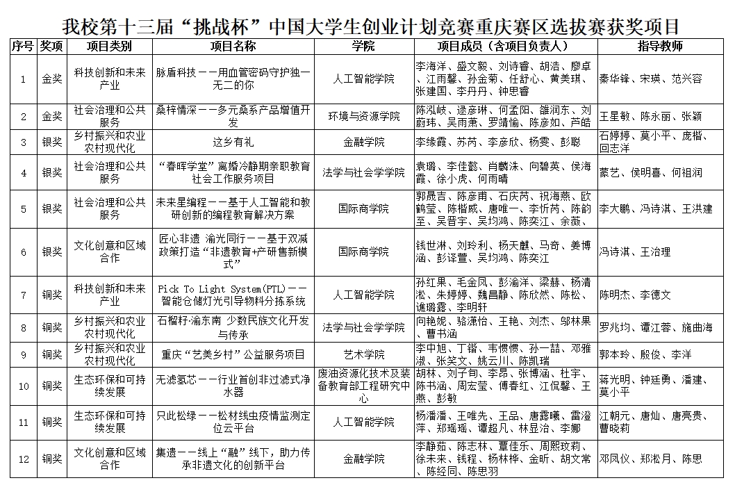 近日,由团市委、市教委、市人力社保局、市科协和市学联共同举办“‘智’汇青春”第十三届“挑战杯”中国大学生创业计划竞赛重庆赛区选拔赛落下帷幕。大赛分为科技创新和未来产业、乡村振兴和农业农村现代化、社会治理和公共服务、生态环保和可持续发展、文化创意和区域合作5个赛道。经过激烈比拼,共评出选拔赛金奖95件、银奖197件、铜奖363件。其中,pp电子荣获2项金奖、4项银奖和6项铜奖,同时,pp电子荣获优秀组织奖;人工智能学院项目《脉盾科技——用血管密码守护独一无二的你》指导老师秦华锋、宋瑛、范兴容,环境与资源学院项目《桑梓情深——多元桑系产品增值开发》指导老师王星敏、陈永丽、张颖荣获优秀指导老师;校团委袁影老师获评先进工作者。