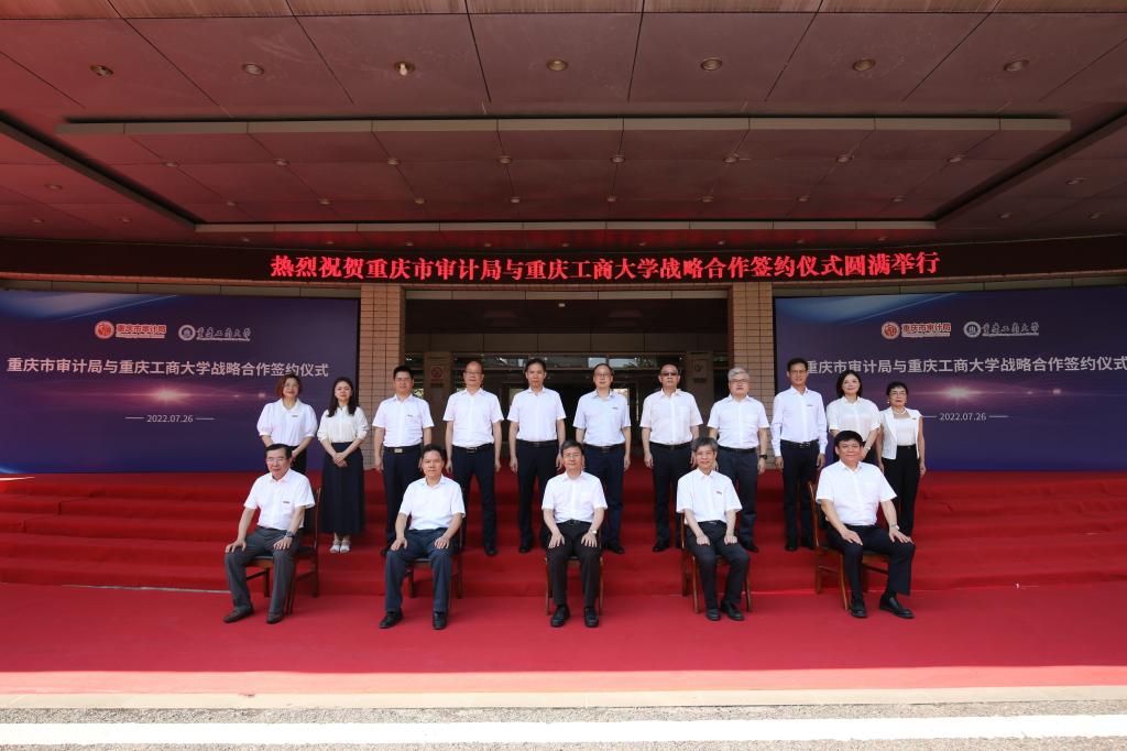 7月26日下午,学校与重庆市审计局战略合作签约仪式在南岸校区博智楼7200报告厅举行。中共重庆市委审计委员会办公室主任、市审计局党组书记、局长姜国杰,副局长戴希、一级巡视员、副局长张海坤,学校党委副书记、校长孙芳城,副校长赵骅,重庆市审计局相关处室负责人、南岸区审计局负责人、首期计算机审计初级培训班学员代表、pp电子会计学院班子成员及部分教师代表等参加了签约仪式。仪式由会计学院院长罗勇主持。