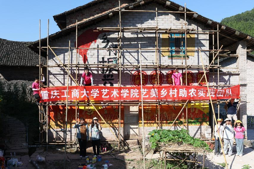 艺术学院艺美乡村助农实践团队绘制美丽乡村主题墙绘