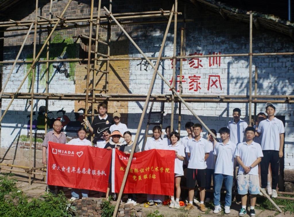 现代国际设计艺术学院萤火虫青年志愿者服务队绘制美丽乡村主题墙绘