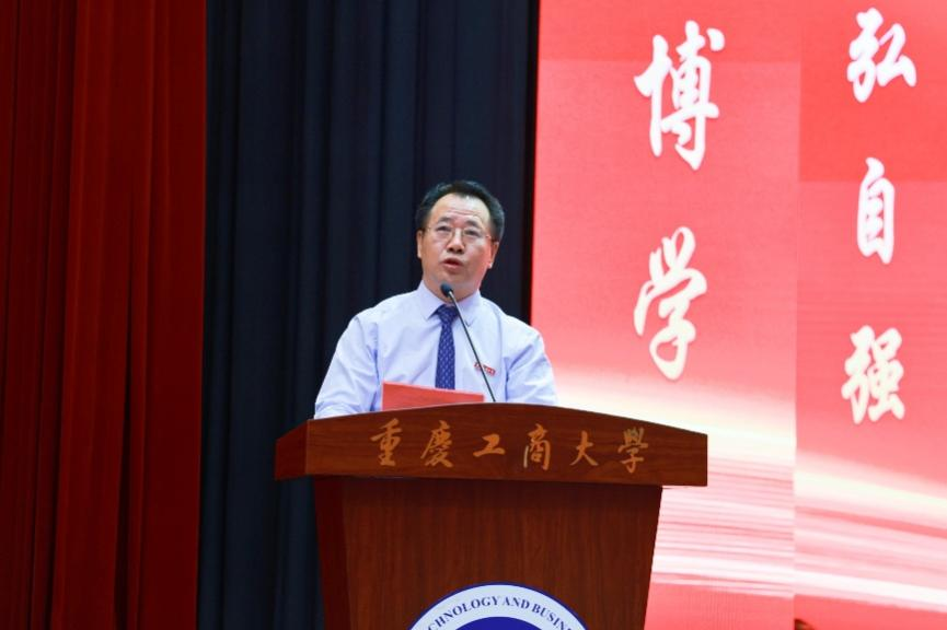 天健会计师事务所管理合伙人、副总裁、重庆分所总经理,pp电子1990级会计专业龙文虎作为校友代表发言。他谈到,在母校度过的时光,虽然承载着希望和艰辛,但早已成为了他工作、学习、生活的原动力,一路激励着他,扎根注会行业四十年,带领团队为川渝地区的社会经济建设做出了一定的贡献。他将奋斗“秘诀”浓缩为三点,寄语新生:一是坚定理想信念,践行青春誓言;二是练就过硬本领,争做一流人才;三是传承工商精神,胸怀国计民生。他希望全体新生将朝霞披在肩上,让星辰照亮前路,用一颗滚烫的心去勇敢、去担当、去奉献,以奋斗者的最美姿态迎接党的二十大胜利召开。