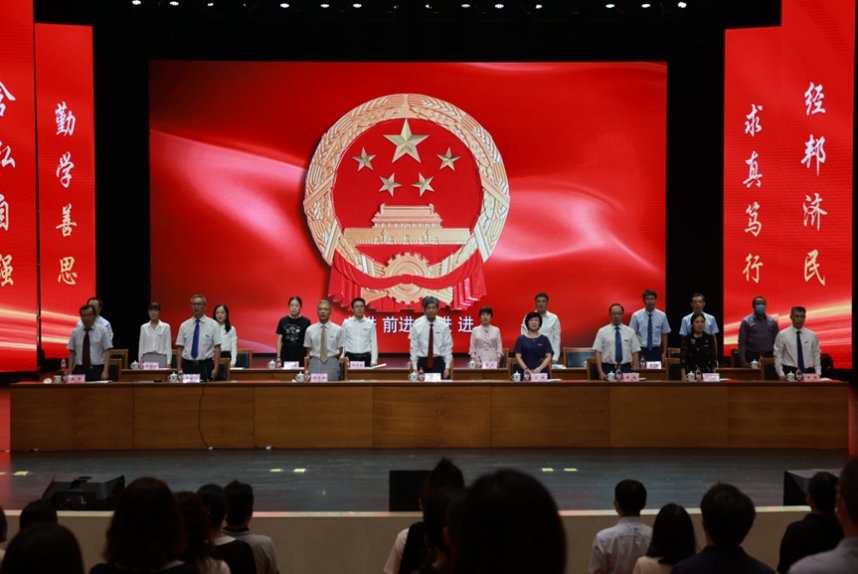 在雄壮的国歌声中,2022级新生开学典礼正式拉开帷幕。