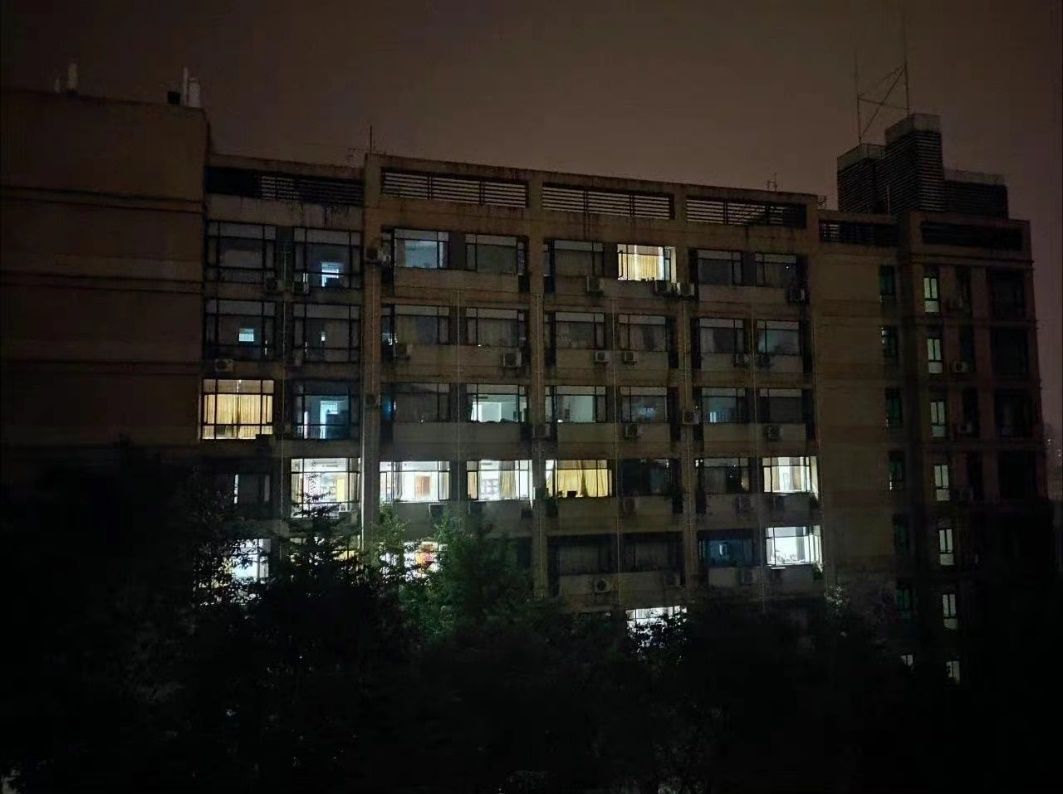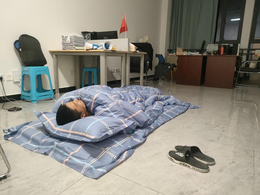 晚上20:00,当天的核酸检测顺利完成,餐食运送完成。志愿者们返回临时居住的办公室、会议室,他们继续完成物资准备,撰写材料,整理数据工作……办公室灯火通明,志愿者们的工作还在继续着。
