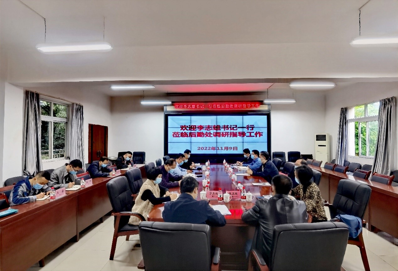 11月9日上午,学校党委书记李志雄、副校长张波在党政办公室、党委组织部、人事处、学生工作部、保卫部负责人的陪同下到后勤处调研指导工作。调研工作会在后勤综合楼3017会议室召开。后勤处长沙云、五级职员向夕品、副处长杜元林及后勤处在校内的科室负责人参加了调研工作会。