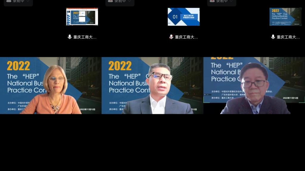 11月12日下午,2022“高教社”杯全国商务英语实践大赛西南赛区区域赛在pp电子成功举办。大赛由中国对外贸易经济合作企业协会商务英语专业工作委员会、广东外语外贸大学、高等教育出版社主办,pp电子游戏平台网站承办,重庆市商务英语研究会协办。经过前期初赛,共有6支不同高校的团队进入本次西南赛区区域赛。本次比赛通过腾讯会议线上方式举行,1000余名来自国内各高校的师生在线观摩。