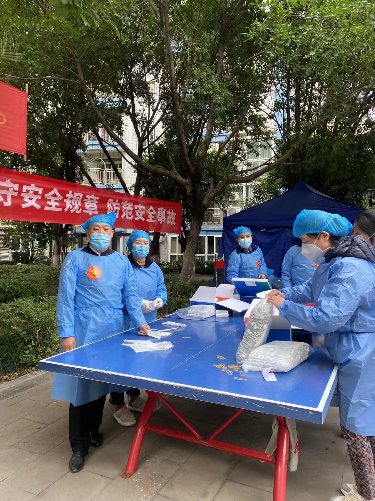 学院党委积极号召党员提高政治站位,强化使命担当,在保证线上教学的同时,主动下沉社区参与志愿服务,家住沙坪坝的郭春霞老师在社区做核酸检测登记员,两天里高效完成三个小区1000余居民的核酸采样登记。苟准老师利用周末协助社区进行小区隔离管控、垃圾转运、进出小区人员登记、生活物资送货上门等服务。易红老师参与社区核酸检测用品发放服务。邓栋老师协助社区做好小区居民生活物资输送工作。潘娟老师在社区进行核酸检测信息登记及秩序维持工作。岳云飞老师积极向社区报名,随时服从社区安排,在疫情大考中挺身而出,用实际行动展现了新时代共产党员的政治本色和精神风貌。