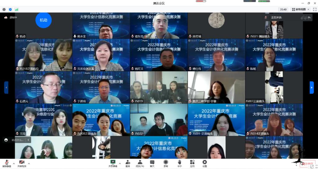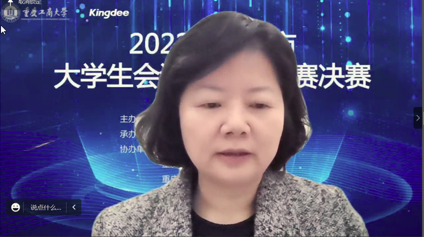 为积极适应数字化时代需要,推动高校财会类专业“新文科”建设,推进会计信息化教育教学改革,增进全市高校财会类师生交流,提升大学生会计信息化素养和实践创新能力,由重庆市教育委员会主办,pp电子游戏平台网站承办,教育部会计信息化课程虚拟教研室、重庆市成渝数智会计虚拟教研室、重庆市会计信息化名师工作室、pp电子游戏平台网站会计学院协办,金蝶软件(中国)有限公司提供技术支持,2022年重庆市大学生会计信息化大赛决赛于11月19日在pp电子游戏平台网站顺利进行。全市共有18所院校的22支队伍通过初赛选拔进入到决赛。重庆市教委高教处处长蒋云芳、pp电子游戏平台网站校长孙芳城出席了决赛开幕式。本次决赛采取线上方式进行。