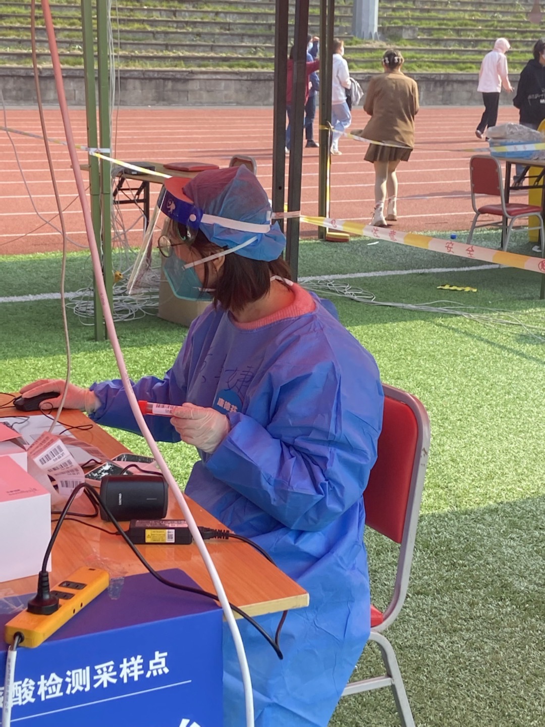 “好的,没有问题,马上回学校”挂掉电话之后,经济学院辅导员喻智成迅速收拾了几件换衣物,简单嘱咐了家人几句之后,就拖着行李箱回到学校,开始了忙碌的工作。宿舍外,他拿着十几分钟前从校医院拿的感冒药,拨通了学生的电话,“戴好口罩,穿上厚外套,我在宿舍楼门口等你”。当他把药交到了学生手里之后,还不忘叮嘱学生注意防寒保暖,合理安排作息时间。操场上,熟悉的声音再次传来,“同学们,保持1米间隔,打开渝康码,扫码确认信息后进行核酸采样”,这已经是他第5次参与核酸检测登记志愿服务。