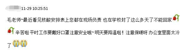 这一幕幕感人的场景,每天都在校园内反复地上演着。学工队伍的老师们为学生做的这些事儿,被大家看在了眼里,也记在了心上。近日,有学生发来短信,感谢他们的默默坚守和辛苦付出。