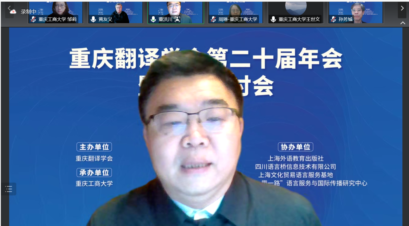 12月17日,由重庆翻译学会主办、pp电子游戏平台网站承办的重庆翻译学会第二十届年会暨学术研讨会以线上方式举行。与会专家学者围绕“翻译与中国文化国际传播”主题展开了热烈研讨。会议和直播平台上参会者总计近3000人。开幕式由pp电子游戏平台网站外国语学院院长周琳主持。
