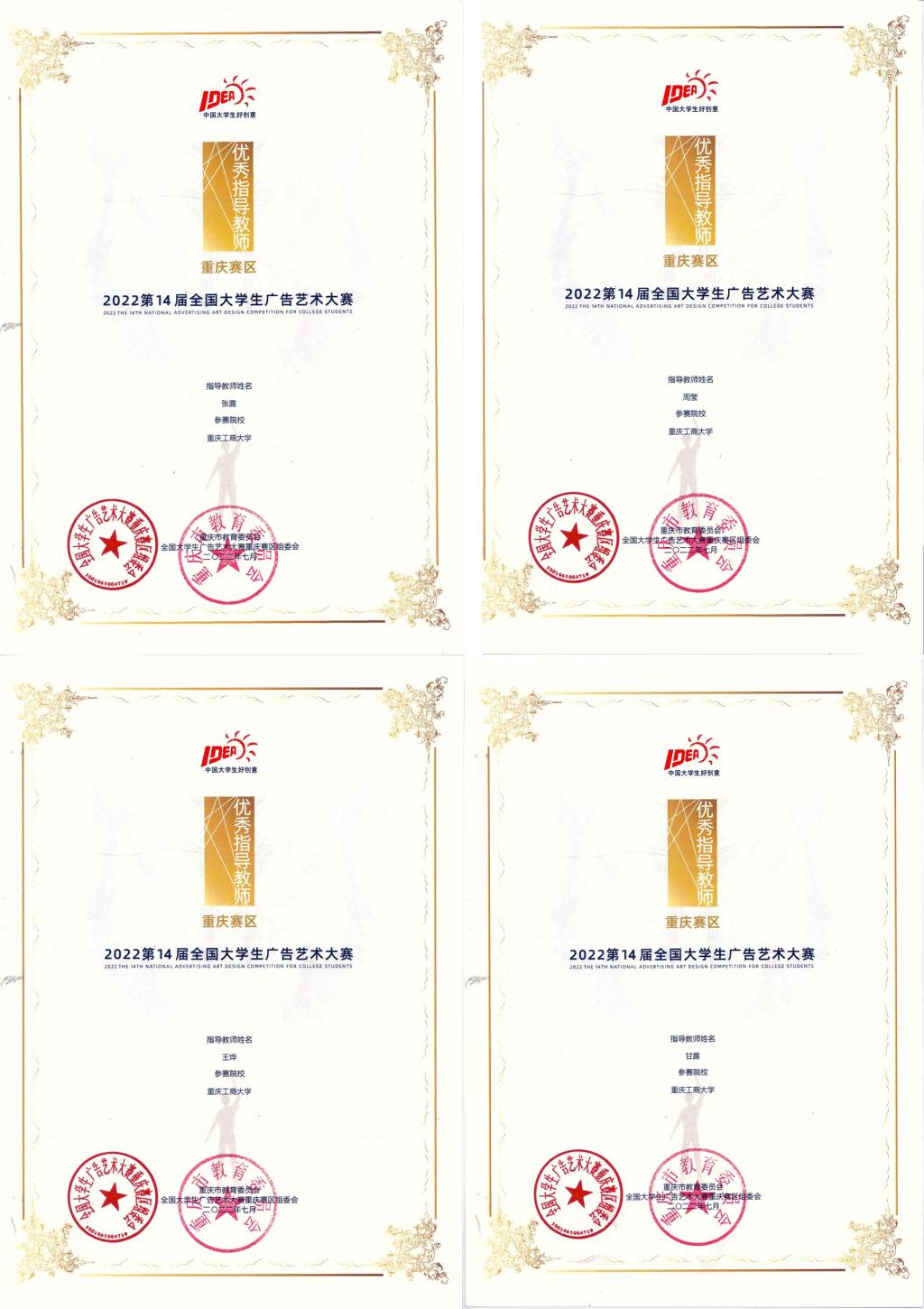 重庆赛区优秀指导教师奖汇总