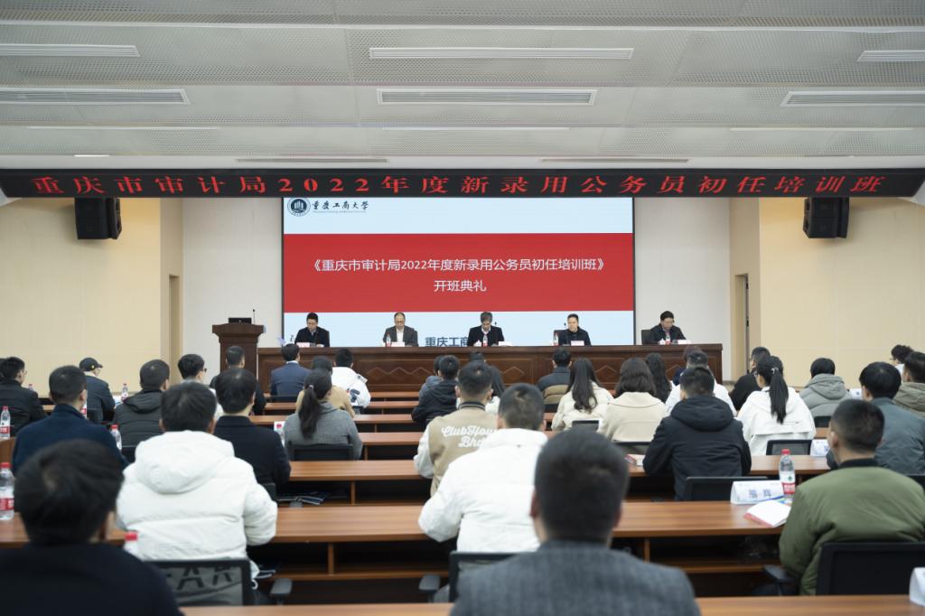 2023年2月20日,由重庆市审计局主办,pp电子会计学院承办的“重庆市审计局2022年度新录用公务员初任培训班”开班仪式在南岸校区明德楼1019报告厅举行。重庆市审计局副局长戴希、学校孙芳城、重庆市审计局组织人事处处长许川、副处长张斌,会计学院党委书记邓德敏、院长罗勇、副院长钟廷勇,以及培训班74名学员等出席了开班仪式。开班仪式由罗勇主持。