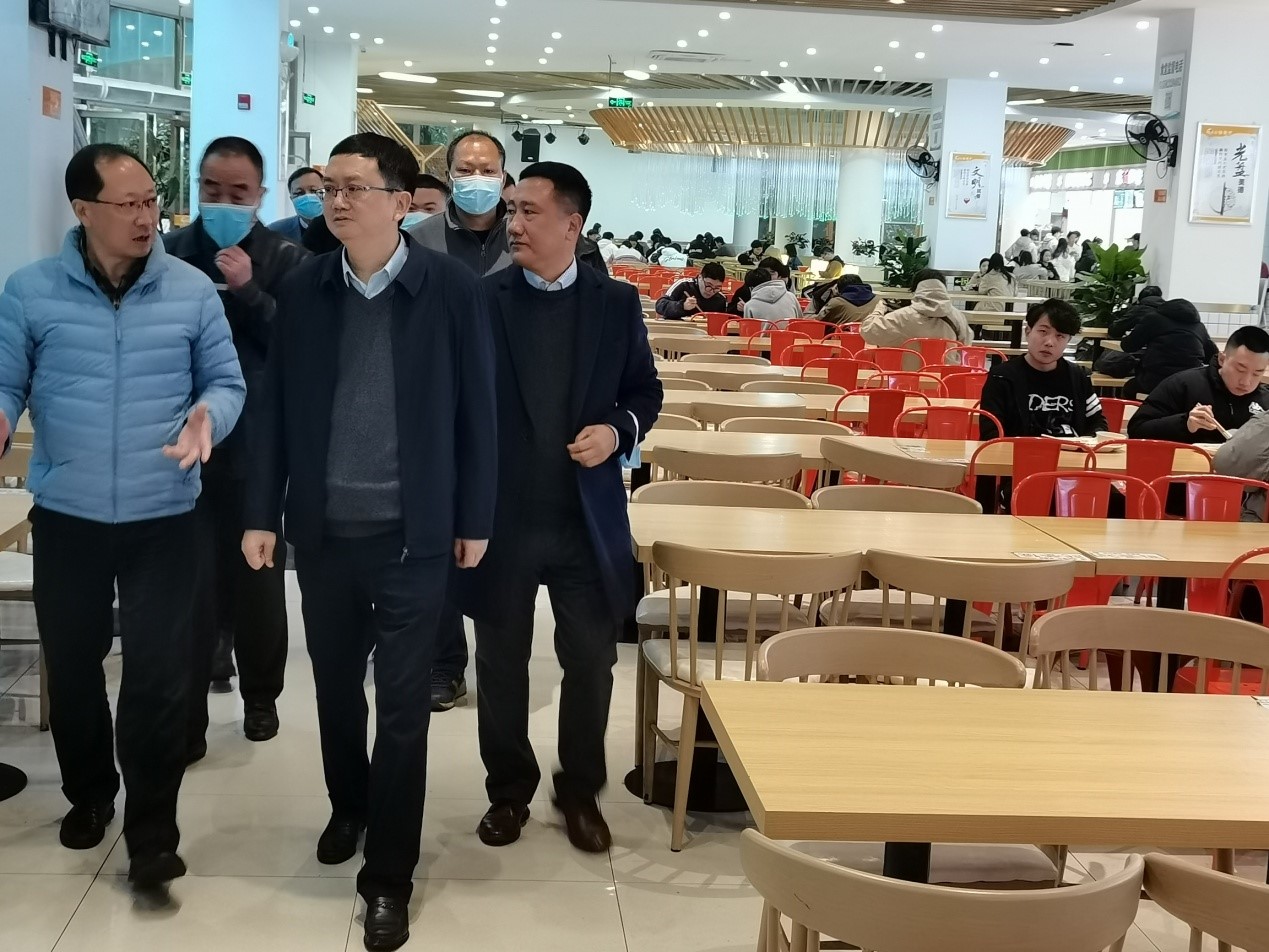3月2日下午,南岸区副区长蒋文新带领区政府办公室、区教委、区市场监督管理局、海棠溪街道办事处负责人对pp电子学生食堂食品安全工作进行实地考察调研。pp电子党委常委、副校长张波,相关职能部门负责人陪同检查。