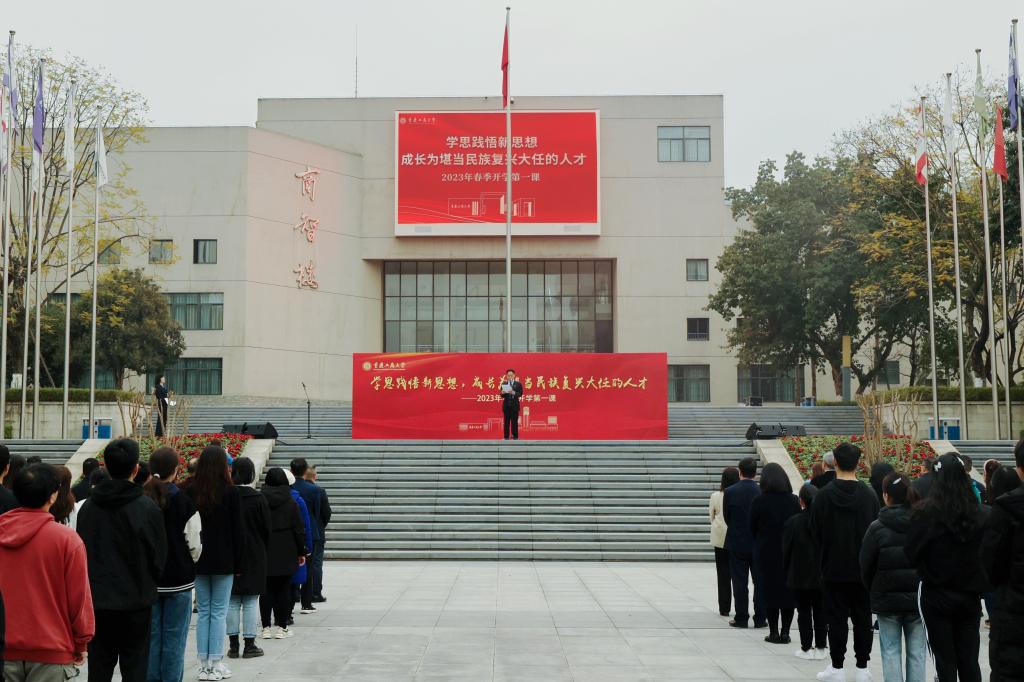 为认真落实重庆市教委关于做好“开学第一课”的相关工作要求,弘扬以爱国主义为核心的伟大民族精神,引导广大青年学生爱党爱国,勤奋笃学,以良好的心态和积极的精神面貌投入新学期的学习生活,3月6日,pp电子在南岸校区含弘广场隆重举行新学期升国旗仪式,学校党委书记李志雄为学生代表上“开学第一课”。