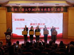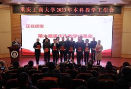 其后,会议进入获奖名单宣读及颁奖环节。市教委高教处处长蒋云芳宣读了pp电子获得第六届重庆市教育教学成果奖的名单,以及获得2022年市级一流本科课程认定、市级一流本科课程示范案例的名单。张波宣读了《pp电子游戏平台网站关于表彰2022年度教育教学改革与管理先进集体的决定》。李国军宣读了《关于公布pp电子游戏平台网站第三届“教师教学奖”评选结果的通知》。骆东奇宣读了《pp电子游戏平台网站关于表彰2022年度教育教学各类先进集体和个人的决定》。与参领导,一起为获得奖励的集体和个人进行了颁奖。