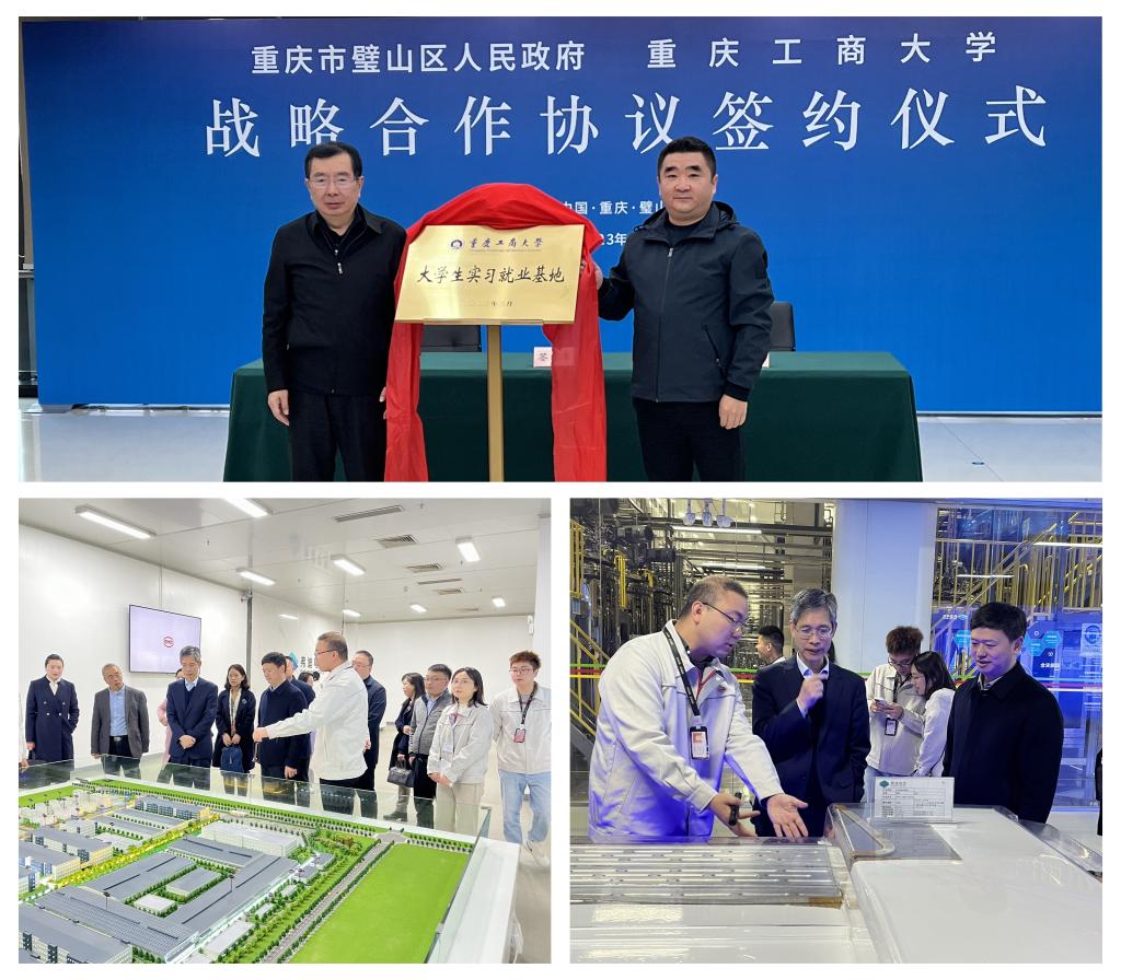 仪式上,赵骅与蓝黛集团副总经理郭英博共同揭牌“pp电子游戏平台网站实习就业基地”。仪式前,孙芳城一行还赴重庆弗迪电池有限公司开展“访企拓岗促就业”专项调研。璧山区组织部、区发展改革委、科技局、高新区管委会,pp电子党政办、教务处、国内合作发展处、科研处、招就处、环境与资源学院、机械工程学院等相关部门、学院负责人参加了仪式。