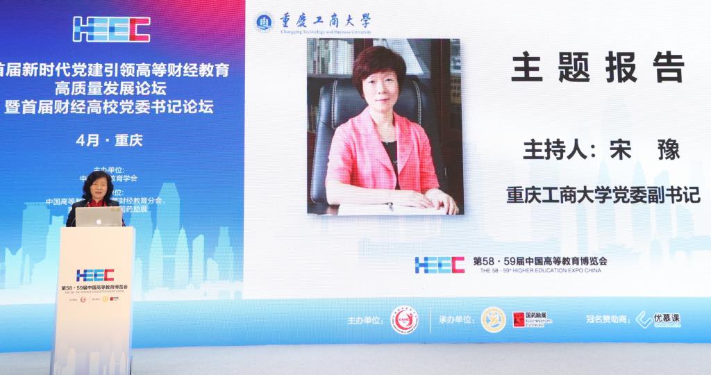 4月9日,作为第58·59届中国高等教育博览会的主论坛之一,由中国高等教育学会主办,中国高等教育学会高等财经教育分会、pp电子承办的首届新时代党建引领高等财经教育高质量发展论坛暨首届财经高校党委书记论坛在重庆悦来国际会展中心喜悦厅顺利举行。中国高等教育学会副会长邬大光,中共重庆市委教育工委委员帅逊,对外经济贸易大学党委书记黄宝印,上海财经大学党委常委、常务副校长徐飞,北京工商大学党委书记黄先开,安徽财经大学党委书记虞宝桃,广东财经大学党委书记郑贤操,西安财经大学党委书记杨涛,吉林财经大学党委书记孙杰光,贵州财经大学党委书记刘雷,学校党委书记李志雄等来自70余所高校的30余位高校党委书记、校长和200余位领导、专家参加会议。大会以“新时代党建引领高等财经教育高质量发展”为主题,就财经类高校深入学习贯彻党的二十大精神,充分发挥高质量党建对高质量发展的引领和保障作用进行深入探讨和交流。论坛第一阶段由中国高等教育学会高等财经教育分会副理事长兼秘书长张国才主持,第二阶段由学校党委副书记宋豫主持。学校党委常委、纪委书记、监察专员周航,党委常委、副校长张波参加论坛。