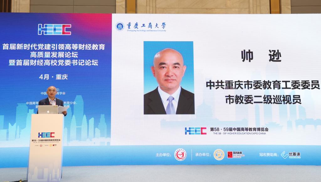 帅逊发表致辞。他代表中共重庆市委教育工委、市教委,对本次会议的隆重召开表示祝贺,向大家的到来表示热忱的欢迎,向多年来支持重庆教育事业发展的各位领导、专家表示衷心的感谢。他指出,本次论坛是中国高等财经教育的一件盛事,也是重庆高等教育领域的一件幸事。他谈到,重庆教育系统坚持从政治上看教育、从民生上抓教育、从规律上办教育、从改革上促教育,大力提升高等教育整体办学水平,推动党建工作与高等教育事业发展同频共振、同步提高。他表示,各专家和领导开展探讨交流、碰撞思想火花,将对开辟高等财经教育发展新领域新赛道、塑造高等财经教育发展新动能新优势产生积极的影响并起到重要的推动和引领作用。