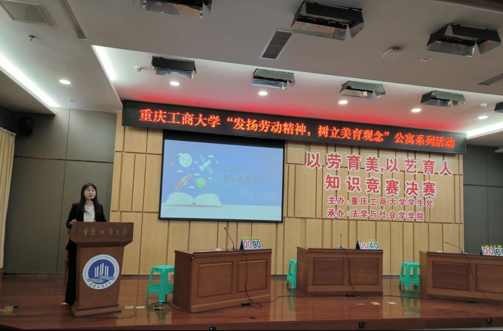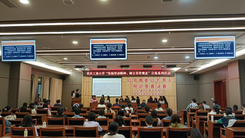 4月24日,由学校党委学工部主办、法学与社会学学院承办的pp电子游戏平台网站“发扬劳动精神,树立美育观念”公寓系列活动之“以劳育美,以艺铸德”知识竞赛决赛在图书馆一楼会议室举行。比赛共分为初赛、复赛、决赛三轮,全校学生以楼栋为单位组队参赛。初赛共有18支队伍报名参赛,经过激烈角逐,6组选手突出重围,进入决赛现场。