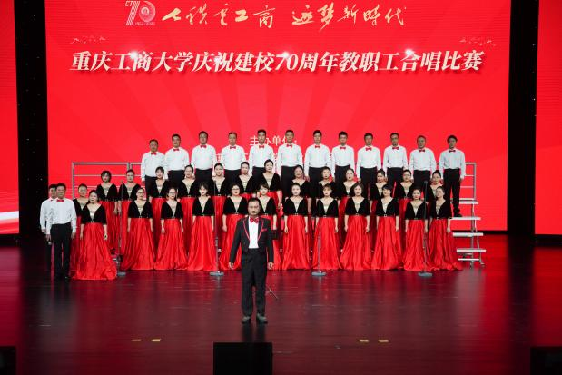 各支队伍精神饱满、队列整齐、歌声嘹亮,在比赛中都展现出了自身特色,赛出了风格、赛出了水平,为现场观众带来了一场视听盛宴。现场气氛热烈、高潮迭起,全场掌声、欢呼声不断。大家倾情演唱,用热烈而深情的歌声唱出了全校教职工对重工商大建校70周年的浓浓祝福。