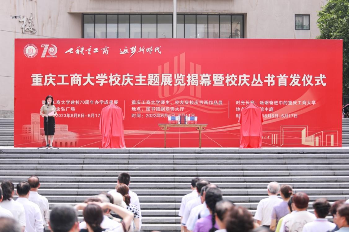6月6日上午11点,学校在含弘广场隆重举行“七秩重工商 逐梦新时代”校庆主题展览揭幕暨校庆丛书首发仪式。学校党委书记李志雄,校长温涛,党委副书记宋豫,党委常委、副校长陈运超、张波、李国军、赵骅等出席仪式。原重庆商学院党委书记张柏村,原渝州大学校长戴宏民,原pp电子游戏平台网站党委书记周希贤,原pp电子游戏平台网站校长王崇举,原pp电子游戏平台网站副校长廖元和、黄朗和离退休教职工代表受邀参加仪式。此外,学校各二级单位负责人、教职工代表、校友代表和学生代表也参加了仪式。仪式由宋豫主持。
