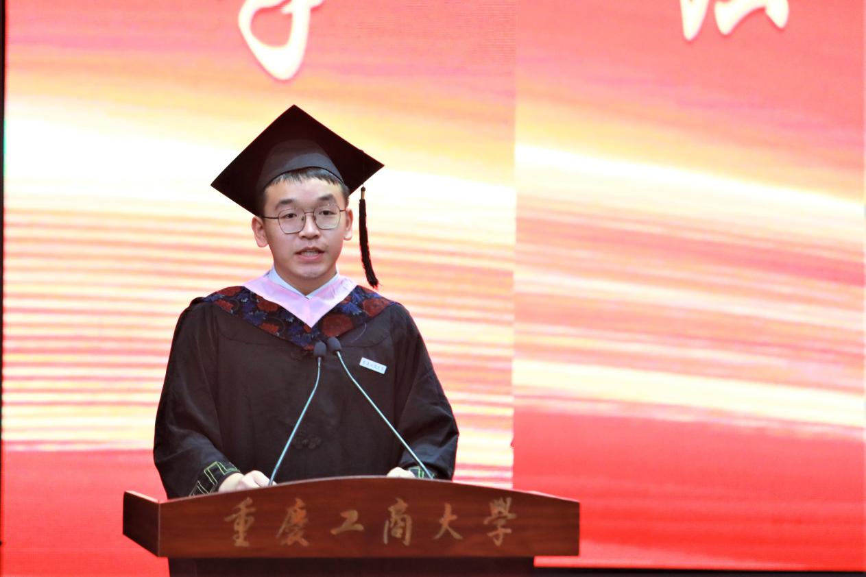 时代造就青年,盛世成就青年。2019级本科生钱世淋作为学生代表发表了毕业感言。他回顾了在pp电子游戏平台网站四年的成长与收获,向辛勤培育他的母校、领导和老师表达了最真挚的祝福与感谢。他谈到,毕业生们即将拾起行囊整装启程迈向人生新阶段,以校友的身份在世界各地、祖国南北不同领域里奋斗。他表示,全体毕业生将牢记“厚德博学,求是创新”的校训,永葆“含弘自强,经邦济民”的重工商大精神,在各自的青春赛道跑出无愧于母校、无愧于祖国、无愧于人民、无愧于这个时代的好成绩,在以中国式现代化全面推进中华民族伟大复兴的新征程上贡献重工商大人的力量。