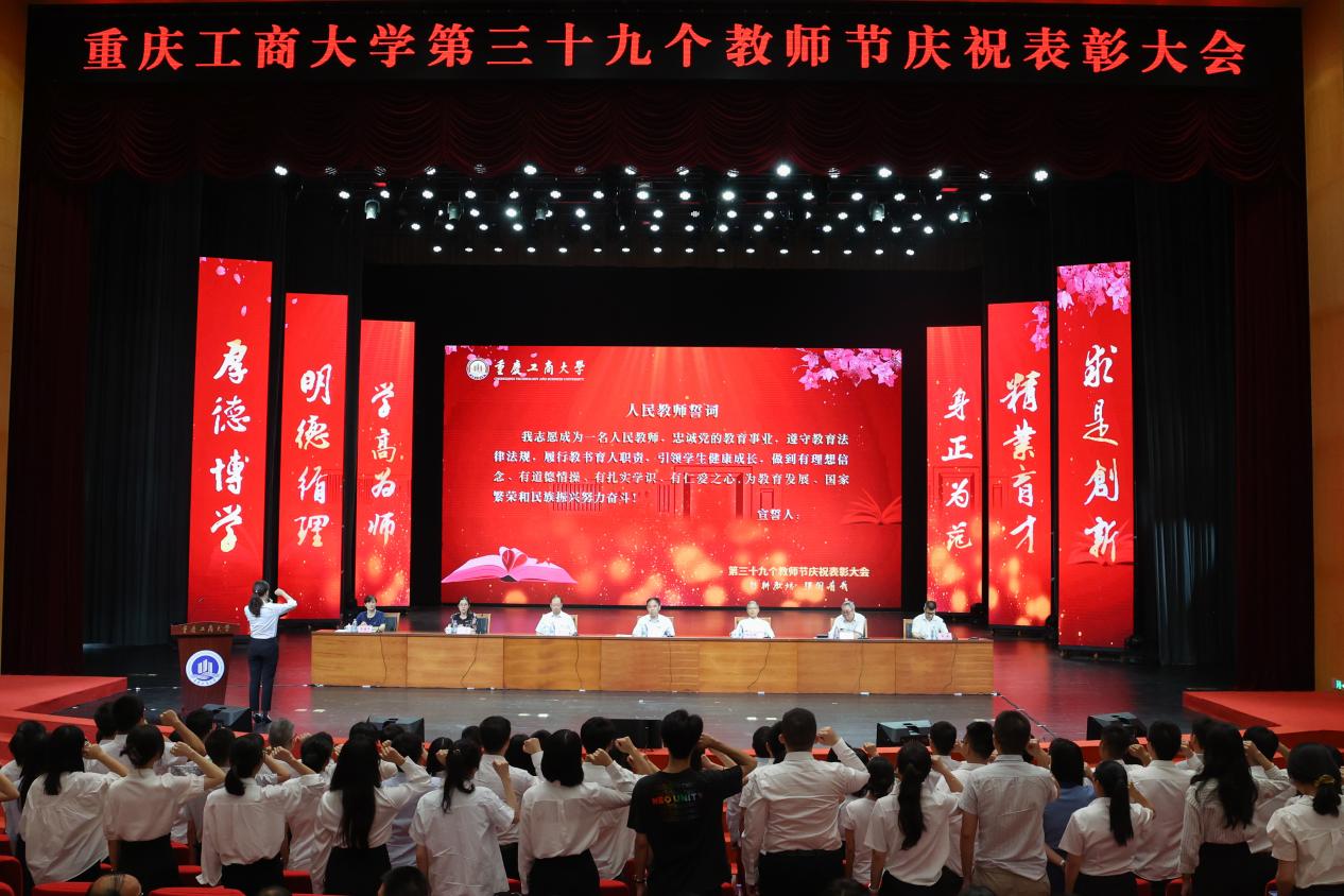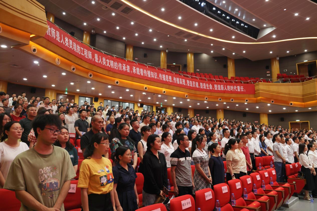 为深入学习贯彻习近平新时代中国特色社会主义思想和党的二十大精神,热烈庆祝第三十九个教师节,表彰和鼓励为全校教育事业做出重要贡献的教职员工,9月8日下午,pp电子在图书馆剧场举行教师节庆祝表彰大会。全体在家校领导,受表彰人员代表,中层干部代表,教职工代表,离退休人员代表和学生代表参加大会。会议由党委常委、副校长李敬主持。