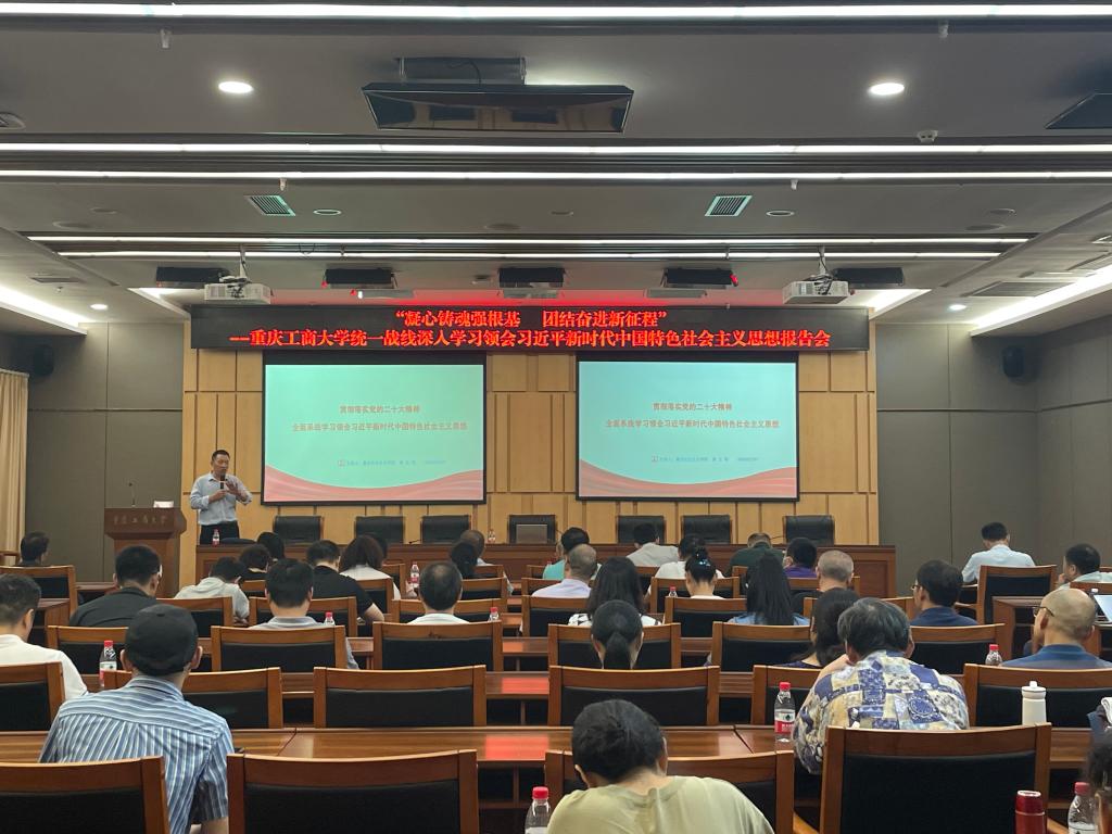 为全面贯彻落实中共二十大精神,推进校内各民主党派、无党派人士和党外知识分子持续深入开展“凝心铸魂强根基 团结奋进新征程”主题教育,学深悟透笃行习近平新时代中国特色社会主义思想,不断巩固与中国共产党团结奋斗的共同思想政治基础。9月22日下午,pp电子在新图书馆会议中心一会议室举行“凝心铸魂强根基 团结奋进新征程”——pp电子游戏平台网站统一战线深入学习领会习近平新时代中国特色社会主义思想报告会,邀请重庆社会主义学院多党合作研究室的秦江明教授做主题报告,pp电子各民主党派基层组织和统战团体班子成员、成员代表共60余人参会。会议由学校党委常委、统战部常务副部长陈松主持。