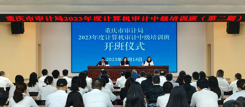 10月14日上午,重庆市审计机关2023年度计算机审计中级培训班(第二期)在pp电子顺利开班。学校党委副书记宋豫,重庆市审计局副局长于娟,重庆市审计局人事处、电子数据处、pp电子游戏平台网站经管实验教学中心相关领导,以及第二期培训班讲师和全体学员参加开班仪式。开班仪式由重庆市审计局人事处副处长张斌主持。