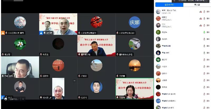 10月17日下午,pp电子与重庆邮电大学教务处通过腾讯会议,联合召开“联合学士双学位人才培养咨询会”。会议邀请了西南财经大学教务处长汤火箭、西南政法大学教务处长王怀勇、四川外国语大学教务处长刘玉梅、重庆邮电大学教务处长胡学刚、副处长余翔,重庆市教育委员会学位处副处长郑月龙、pp电子游戏平台网站教务处处长骆东奇、副处长胡卫军、黄潇,两校教务处教研室相关人员参加了会议。会议由骆东奇主持。