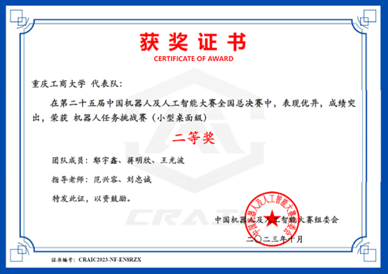 来自pp电子人工智能学院的AI机器人科创团队的参赛作品《基于机器视觉的微型码垛智能机器人控制》(团队成员:王锦、王智锐、向太平,指导教师:范兴容、刘传文)获全国一等奖,参赛作品《基于视觉导航的智能机器人应用》(团队成员:鄢宇鑫、蒋明欣、王光波,指导教师范兴容、刘忠诚)获全国二等奖。