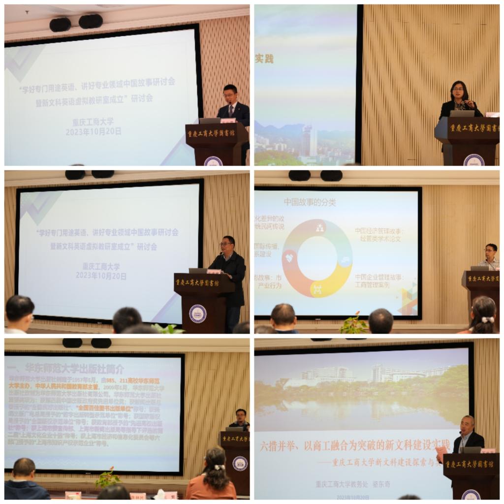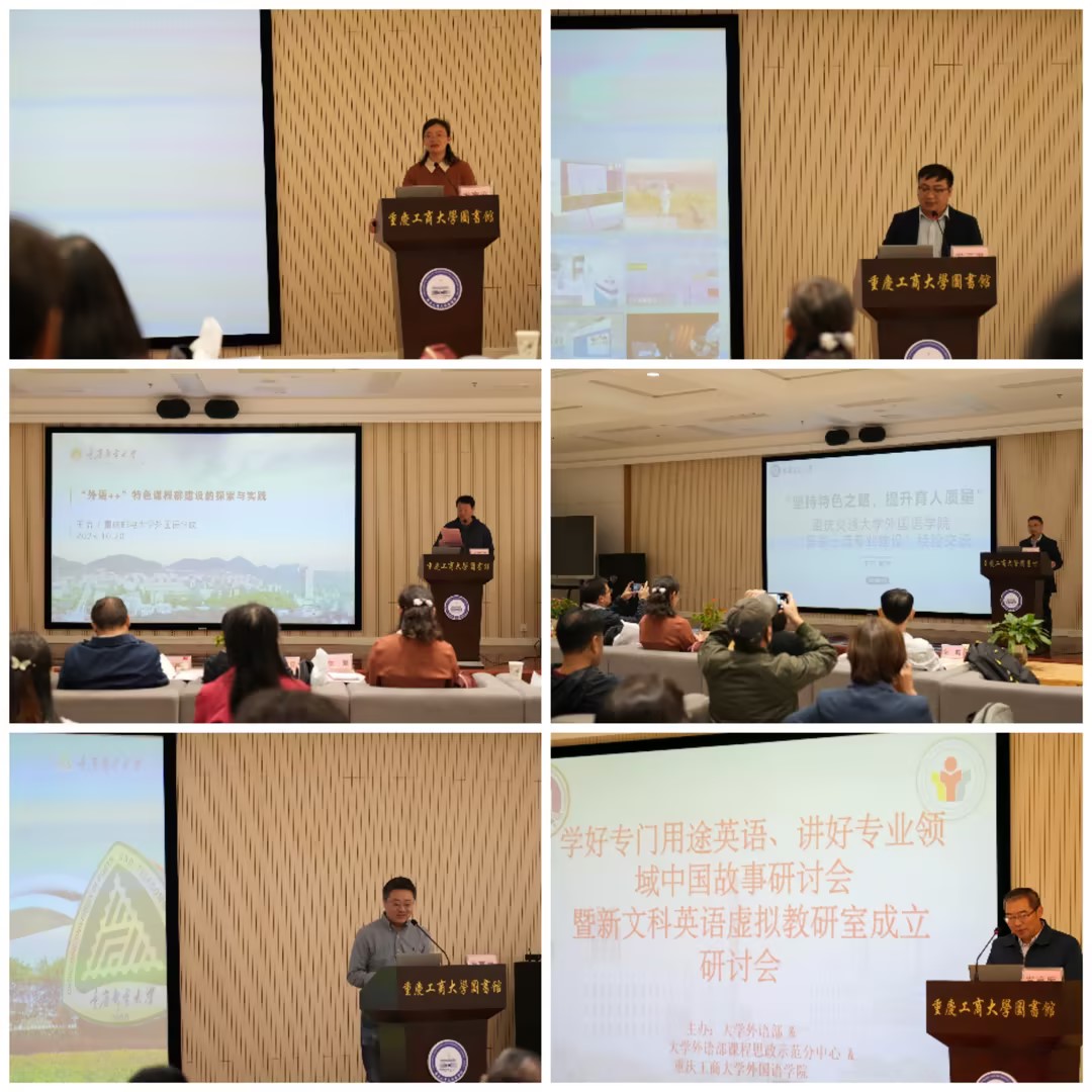 10月20日上午,由pp电子游戏平台网站外国语学院和大学外语部课程思政示范分中心主办的“学好专门用途英语、讲好专业领域中国故事”教学研讨会暨新文科英语虚拟教研室成立大会在校图书馆视听阅览室召开。pp电子游戏平台网站、重庆交通大学、重庆邮电大学、外语教学与研究出版社、重庆博教科技股份有限公司、华东师范大学出版社等单位相关专家学者、老师参加会议。