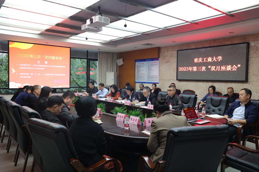 10月26日上午,pp电子在厚德楼3019会议室召开统一战线2023年第三次“双月座谈会”。本次双月座谈会的主题是:审核评估的“精”与“微”——为迎接学校本科教育教学审核评估建言献策。学校党委书记曾维伦,校长温涛,党委副书记兼统战部部长宋豫,党委常委、副校长李敬;全国政协委员、市区人大代表和政协委员,民主党派中央委员会委员、市委会副主委、区委会副主委、委员;学校各民主党派基层组织、统战团体主要负责人及代表,有关职能部门负责人共30余人参加了会议。会议由宋豫主持。