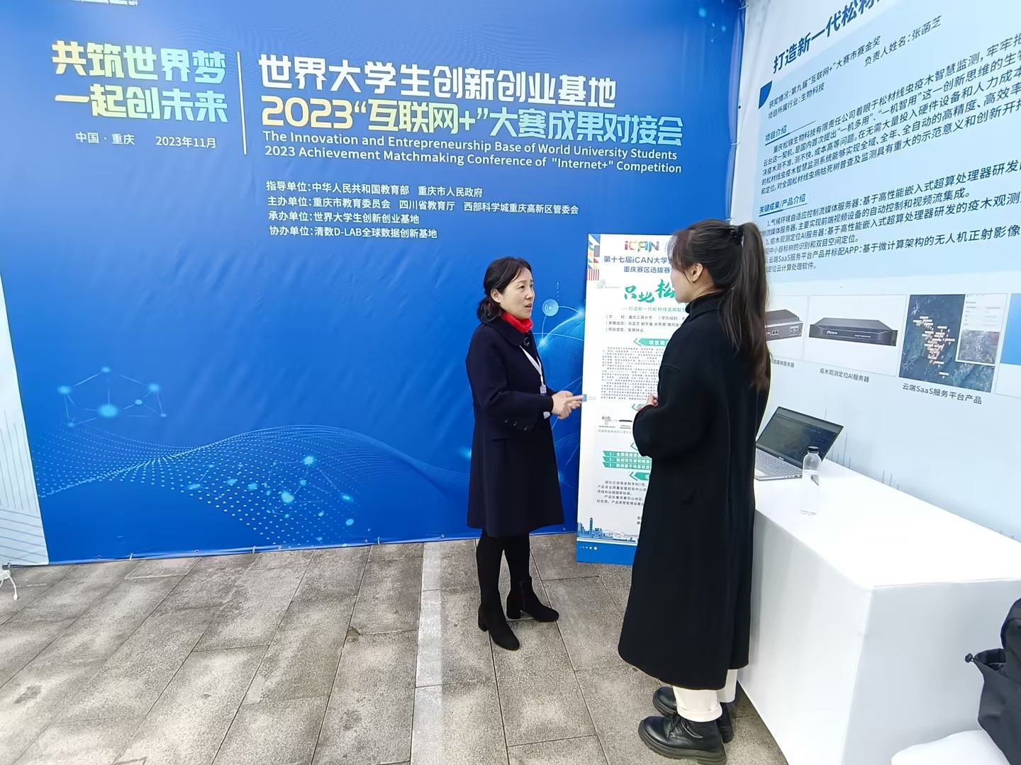 11月16日,由教育部和重庆市政府指导,重庆市教委、四川省教育厅和重庆高新区共同举办的“世界大学生创新创业基地2023‘互联网+’大赛成果对接会”在西部(重庆)科学城大创谷·梦花园举办。pp电子第九届“互联网+”大赛国赛入围项目“只此松绿——打造新一代松材线虫疫木智慧监测系统”项目受邀参加。