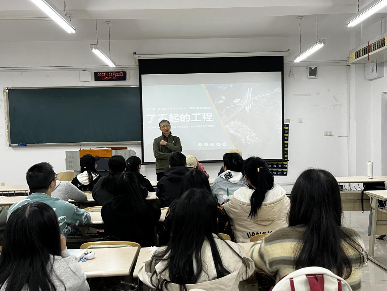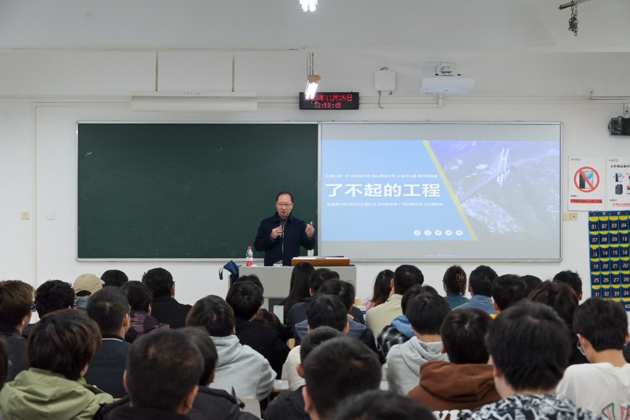 11月22日晚上,学校党委常委、副校长陈运超走进博智楼07505教室,以“了不起的工程”为主题,为2023级经济学(实验班)同学上了一堂生动的思政课。课上,陈运超从我国的地形地貌入手,通过“北盘江第一桥”“珠江口交通巨变”“重庆果园港”“深圳盐田港”等“上天”“入地”“下海”的系列了不起工程样貌,结合相关机械工程原理和经济学知识,向同学们介绍桥梁和港口的建设成就。陈运超表示,“了不起的工程”表征了我国整体的经济实力和基础设施建设水平,并希望同学们充分利用多学科大学资源优势,开展多学科多领域知识的学习。