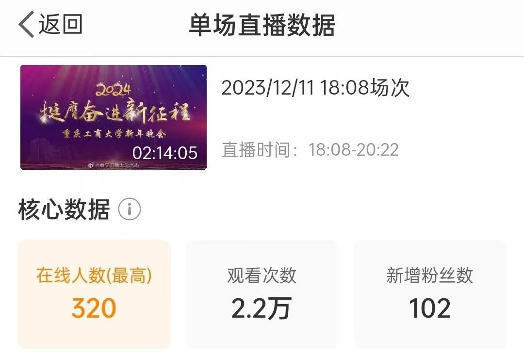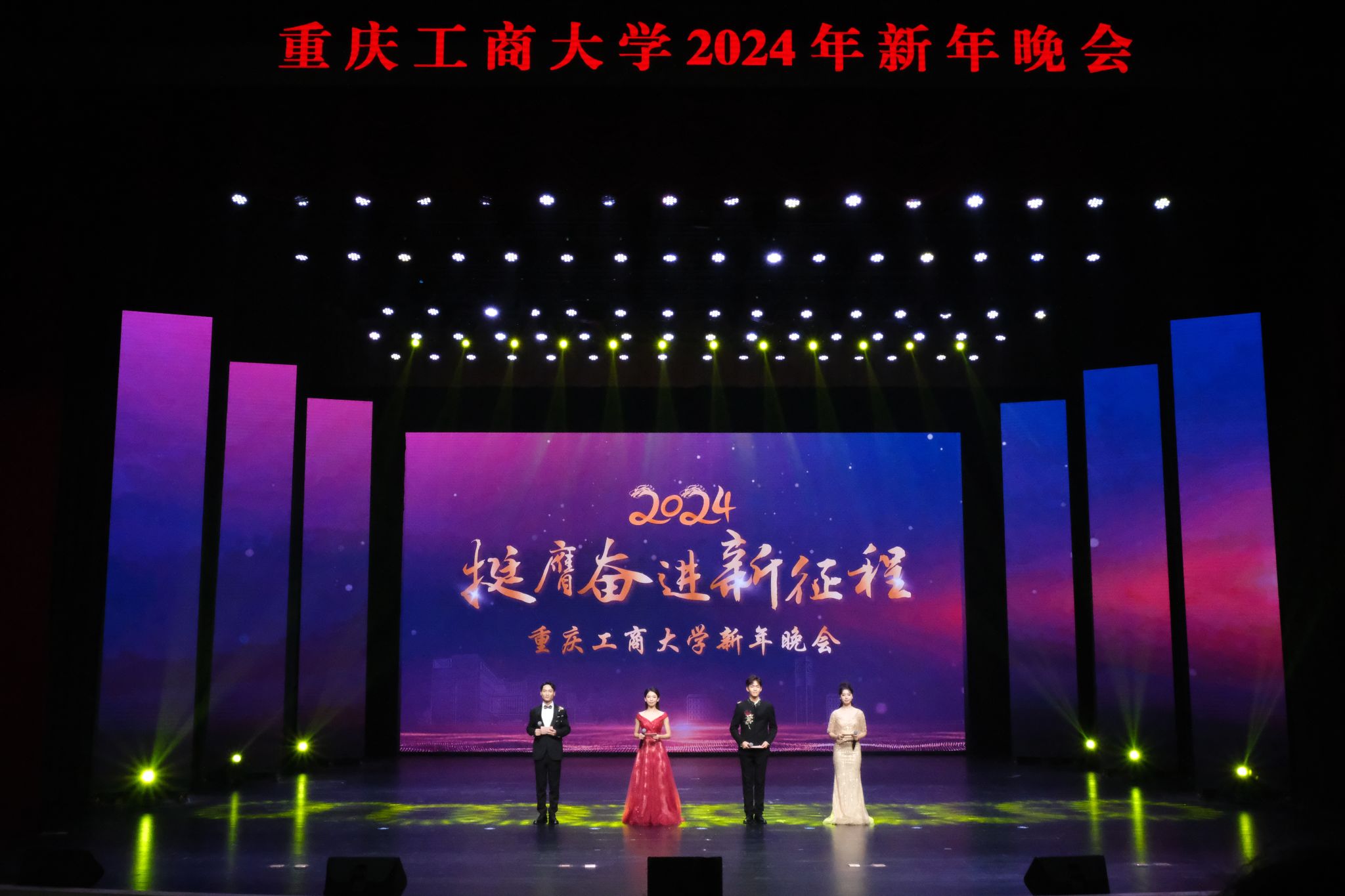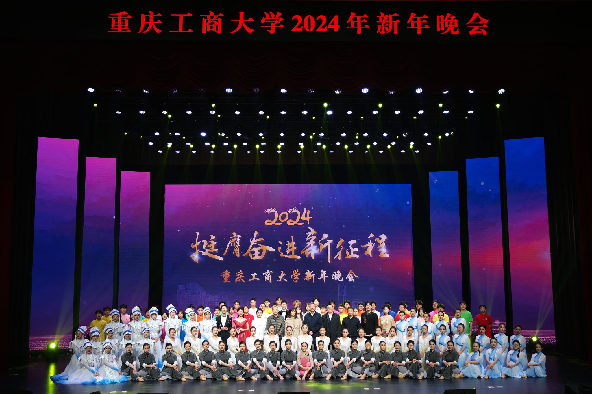 12月11日晚,“挺膺奋进新征程”pp电子游戏平台网站2024年新年晚会在pp电子剧场隆重举行。校长温涛,党委常委、副校长李国军,党委常委、纪委书记、重庆市监委驻学校监察专员张海燕,党委常委、宣传部部长华杰,党委常委、统战部常务副部长陈松,教务处处长骆东奇,校团委书记吴佑波,校团委副书记胡婧婷,与全校近千名师生代表欢聚一堂,齐享视听盛宴。本次新年晚会汇聚歌曲、戏剧、舞蹈、朗诵等艺术形式,多个重庆市第七届大学生艺术展演活动一等奖节目登台演出,是pp电子美育教学成果的集中演示,美育育人成效显著。同时,校团委官方微博对晚会进行全程线上直播,师生、校友、学生家长在线观看人数达2.2万人,重工商大人线上线下欢聚一堂,共同启航新年。