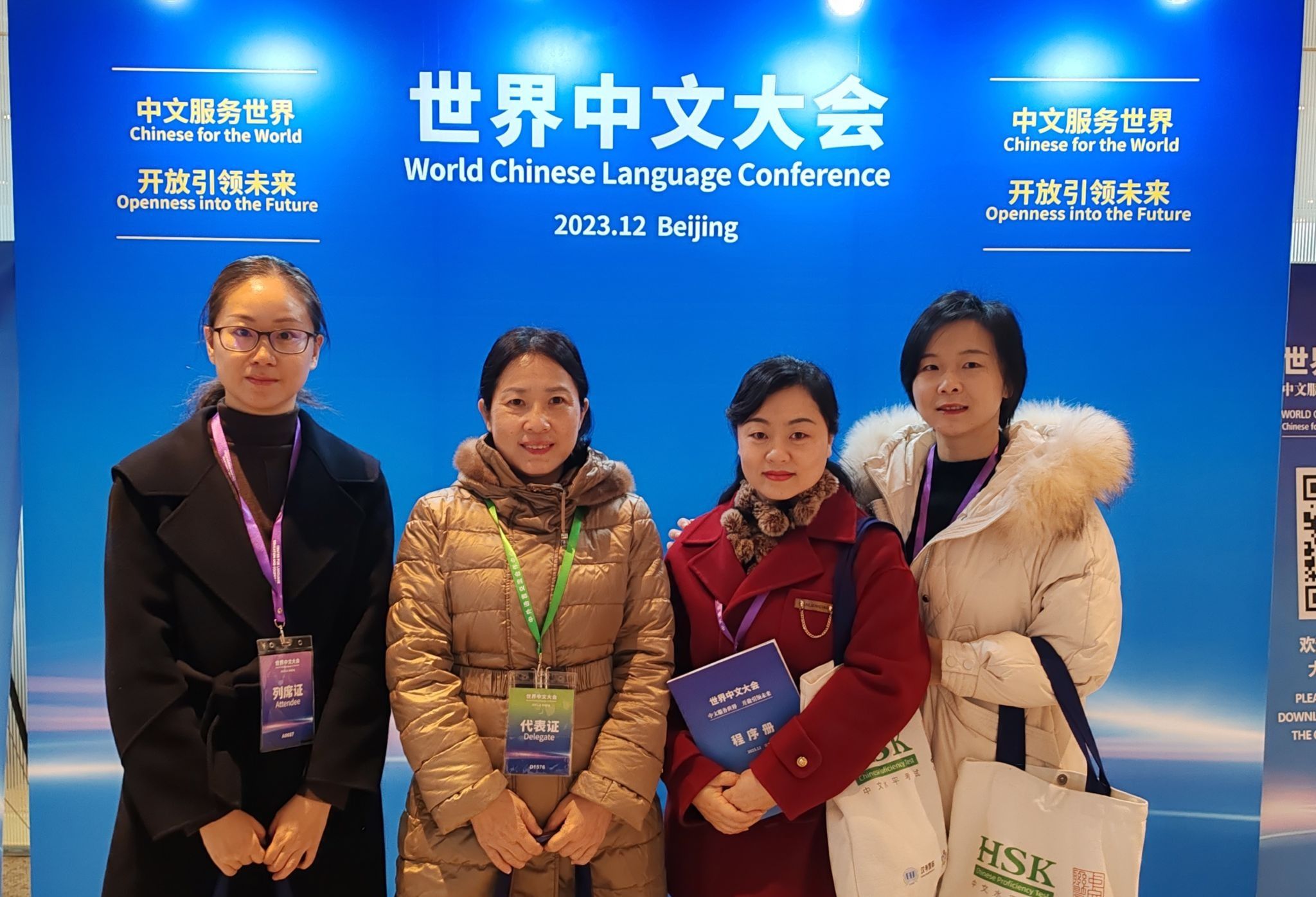 12月7至9日,2023年世界中文大会在北京国家会议中心隆重举行。中共中央政治局常委、国务院副总理丁薛祥出席大会并发表主旨讲话。教育部部长怀进鹏主持全体会议。教育部副部长、国家语言文字工作委员会主任陈杰出席大会主论坛并致辞。pp电子党委常委、副校长柏群带领文学与新闻学院副院长郑笑眉、留学生院一线对外汉语教师赴京参会。据悉,本次中文大会以“中文服务世界,开放引领未来”为主题。中外有关专家、政府官员、国际组织代表和国际语言文化机构负责人等约2000人参加了会议。